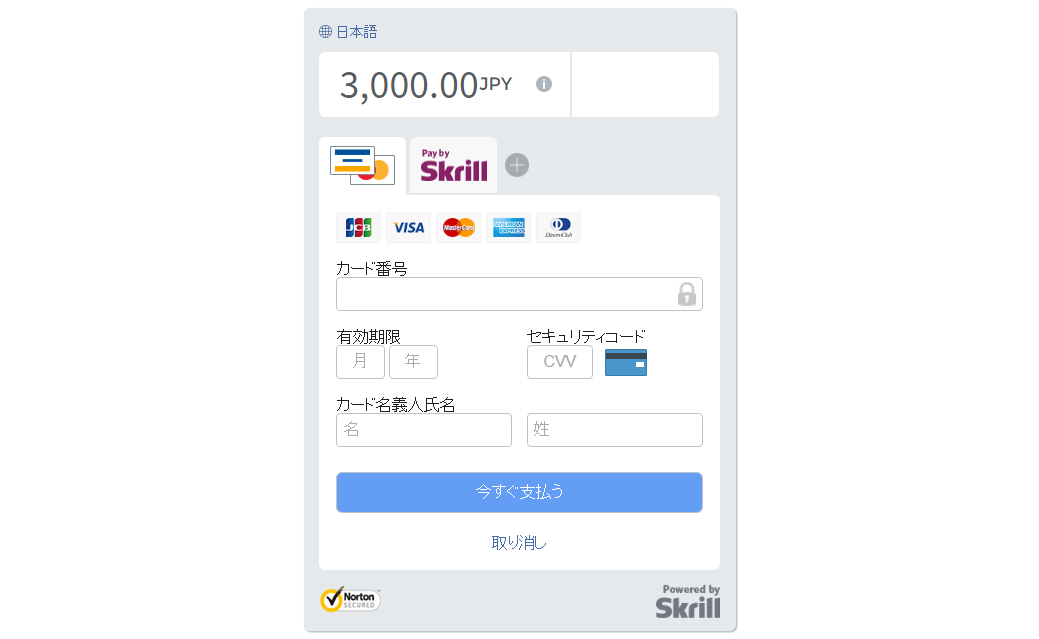 クレジットカード情報を入力します。