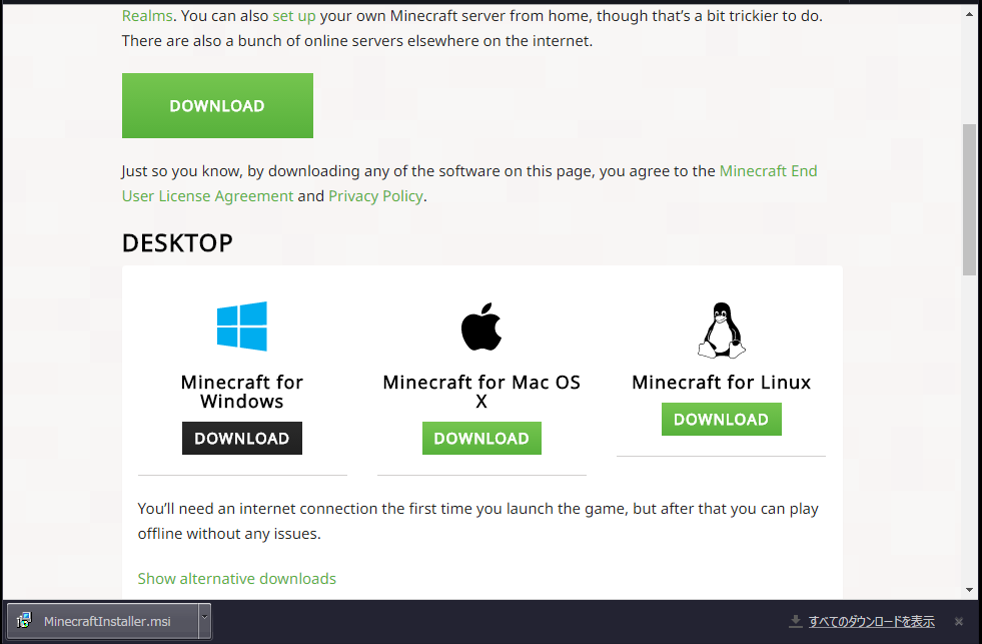 8.Minecraftのダウンロード
